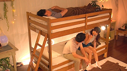 2段ベッドの上に寝ている彼氏の真下で彼女と彼友に1発10万円の連続射精SEXに挑戦してもらいました。